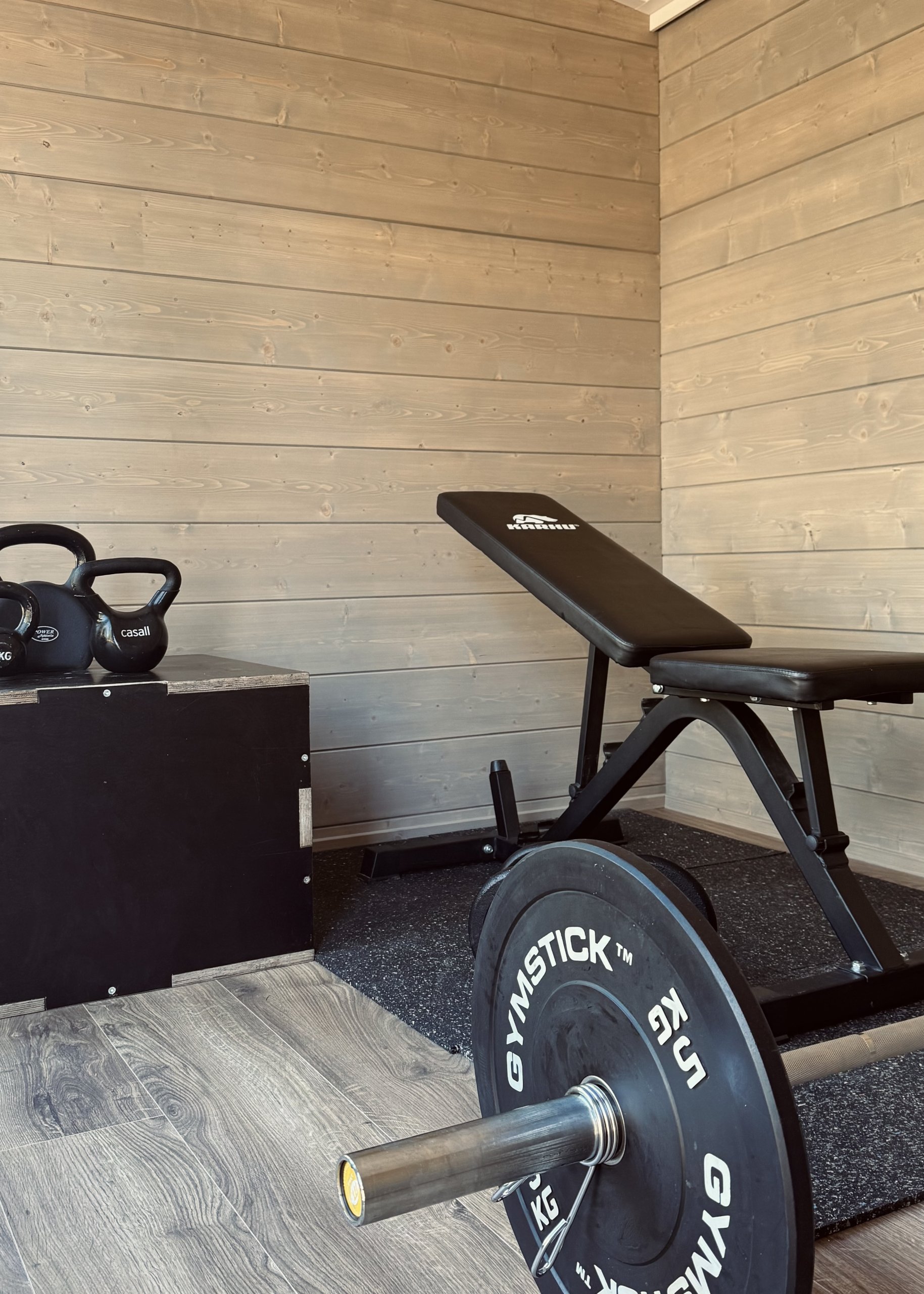 Hirsirakenteen luonnollinen hengittävyys ja miellyttävä akustiikka tekevät aitasta rauhoittavan ympäristön liikkumiselle ja keskittymiselle. Puu luo pehmeän ja lämpimän tunnelman, joka tukee sekä aktiivista treeniä että palautumista. Valo ja tila voi suunnitella juuri omien rutiinien mukaan – yksinkertaisena, avarana ja omannäköisenä.