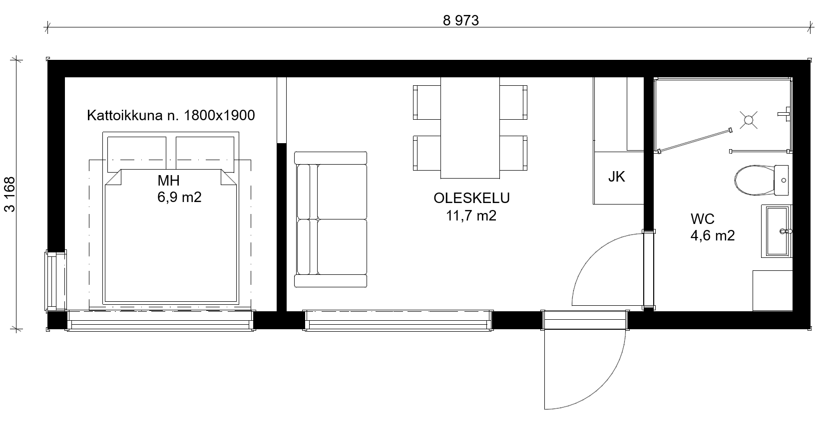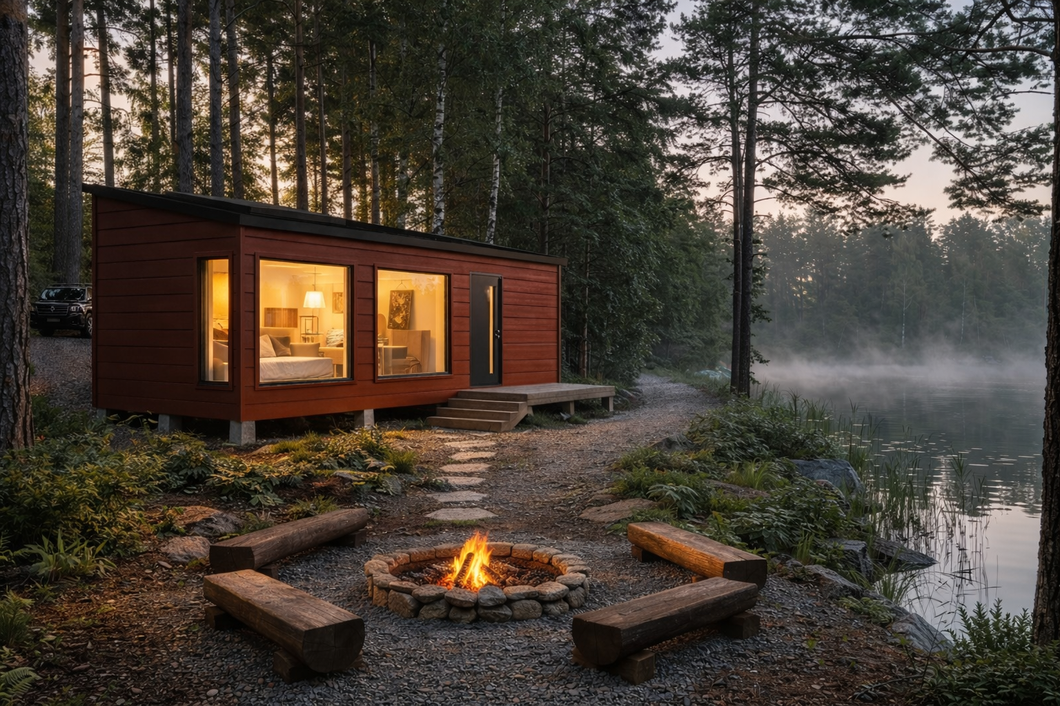 Suosittu Veistomallisto taipuu moneen. Veisto 29 on selkeälinjainen ja elegantti hirsimökki, jossa valo ja avaruus korostuvat. Tämä malli on lapekattoinen. Suuret ikkunapinnat tuovat luonnon osaksi sisätilaa ja luovat rauhallisen tunnelman. Kompakti ja toimiva pohjaratkaisu tarjoaa mukavan majoituksen 2-4 henkilölle.