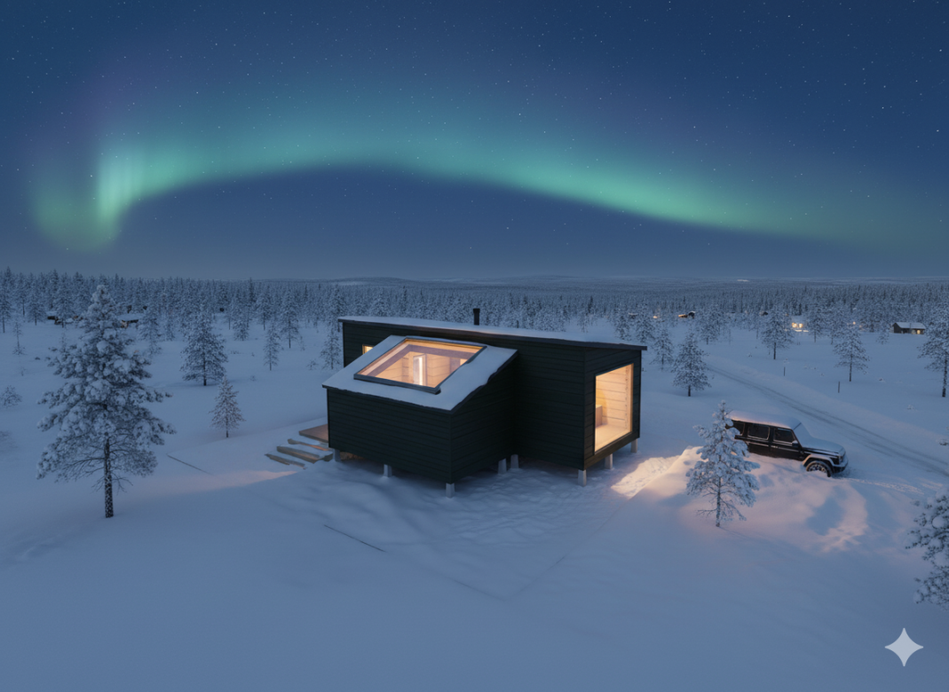 Pallas 37 on elegantti hirsimökki, jossa majoittuminen nousee uudelle tasolle. Mallin kruunaa oma parivuoteellinen sviitti, johon on saatavilla Aurora-kattoikkuna tuomaan valoa ja näkymää suoraan taivaalle. Lisäksi koko seinän kokoinen päätyikkuna avaa luonnon osaksi oleskelutilaa. Huolellisesti suunniteltu kokonaisuus yhdistää yksityisyyden, elämyksellisyyden ja modernin mukavuuden.