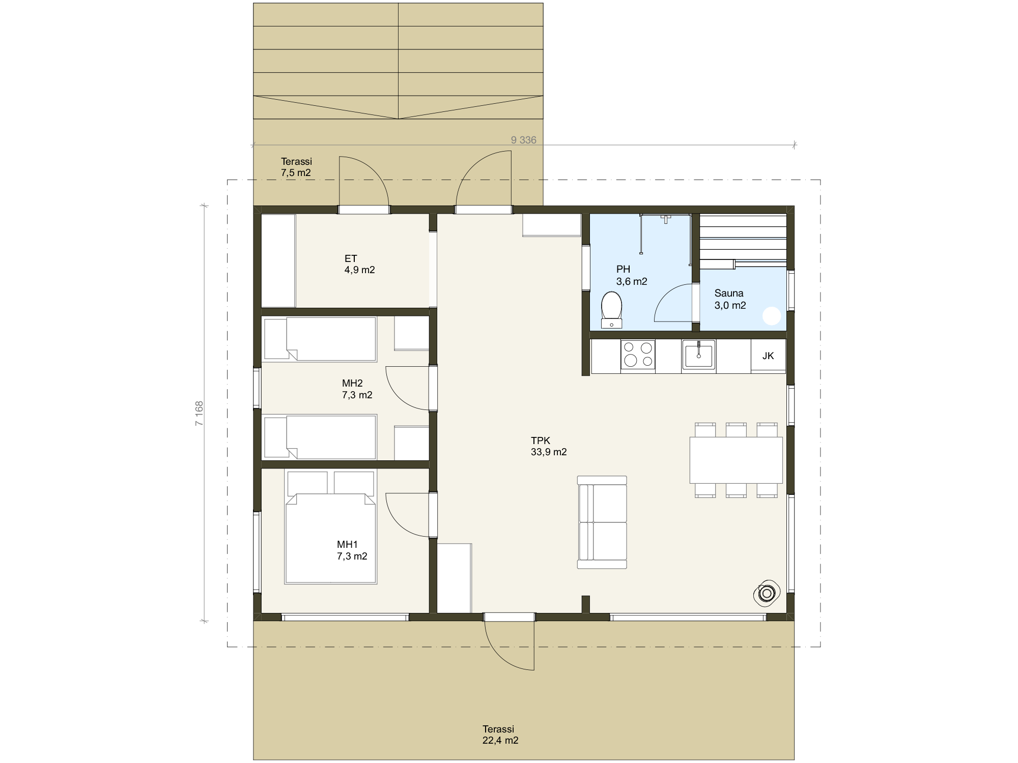 Vaarna-malli tarjoaa avaran ja toimivan tilasuunnittelun, joka yhdistyy sen energiatehokkaaseen muotoiluun.