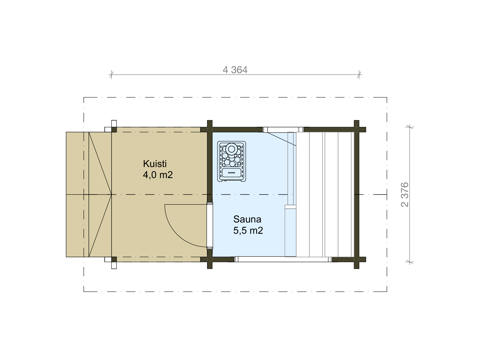 Tässä tyylikkäässä pihasaunassa yhdistyvät kaikki tarpeelliset elementit kompaktissa paketissa. Sauna tarjoaa täydellisen ympäristön rentoutumiseen, ja vilvoittelukuisti täydentää kokonaisuuden, tarjoten mukavan tilan virkistäytymiseen saunan jälkeen. Tämä mallin suunnittelu takaa, että voit nauttia rauhallisista hetkistä kauniissa ympäristössä.
