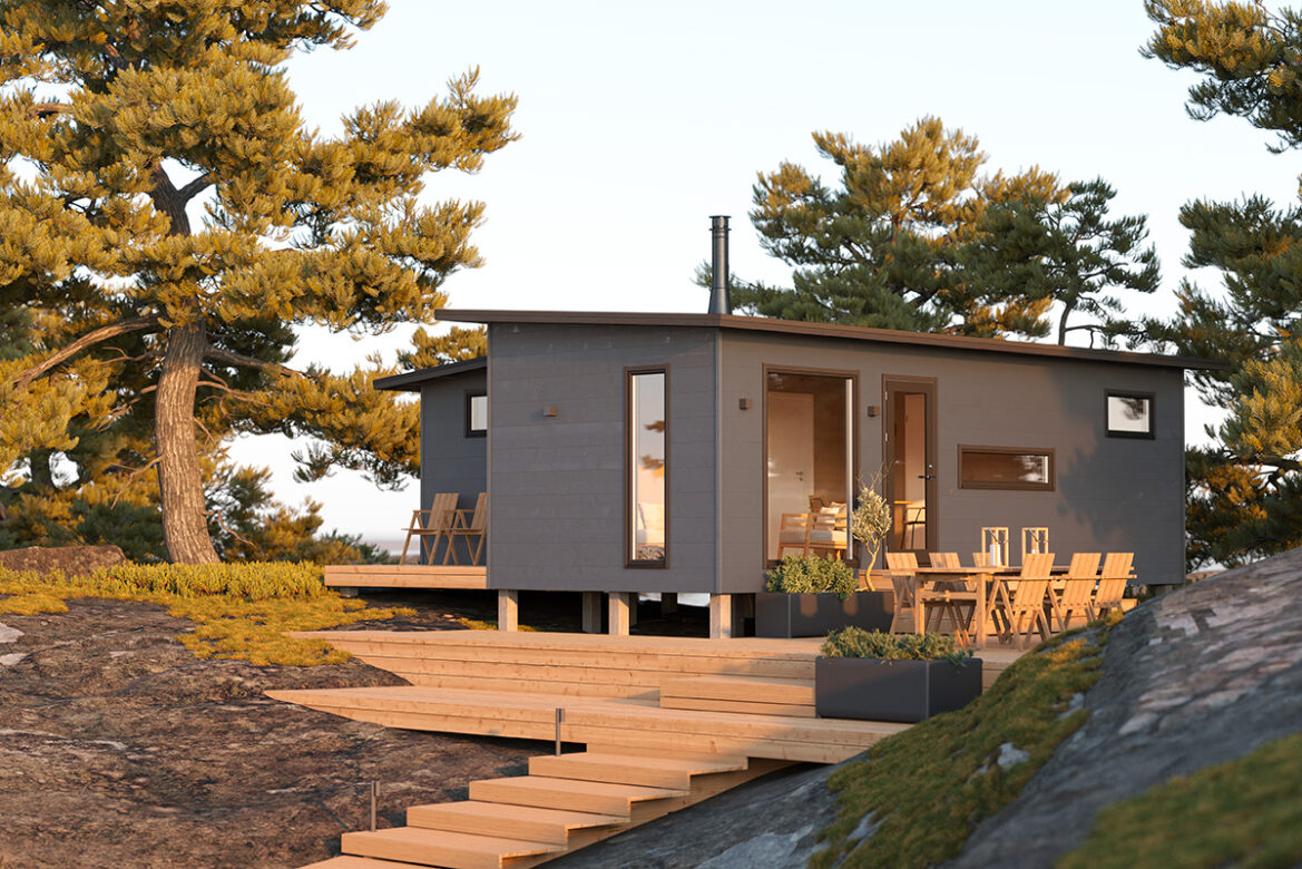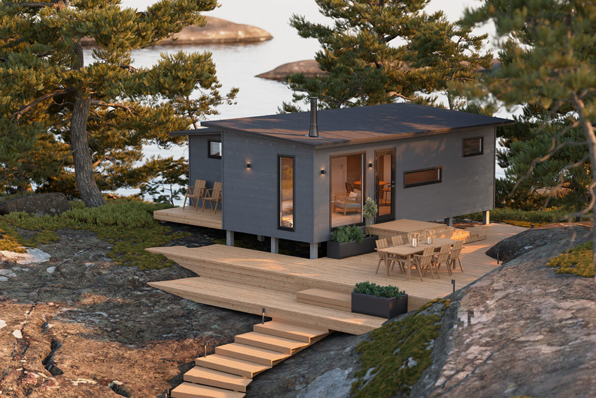 Vuolu-mökki yhdistää erinomaisesti käytännöllisyyden ja mukavuuden, tarjoten täydelliset puitteet unohtumattomalle mökkeilylle. Tilava olohuone, jonka suuret ikkunat avautuvat luonnon sydämeen, luo rauhoittavan ja valoisaan ympäristön, jossa voit nauttia joka hetkestä. Tunnelmallinen takka luo lämpimän ja kutsuvan tunnelman, tehden siitä täydellisen paikan rentoutumiseen viileinä iltoina.